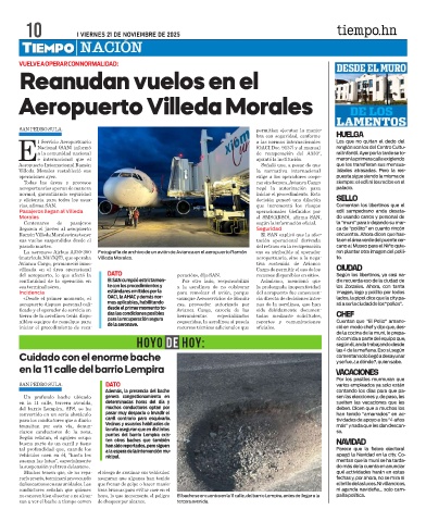 «Desde el primer momento, el OACI, la AHAC y demás nor- «aunque Aeroservicios de Hondu- cia directa de decisiones inter- lados, la pipol dice que la city pa-