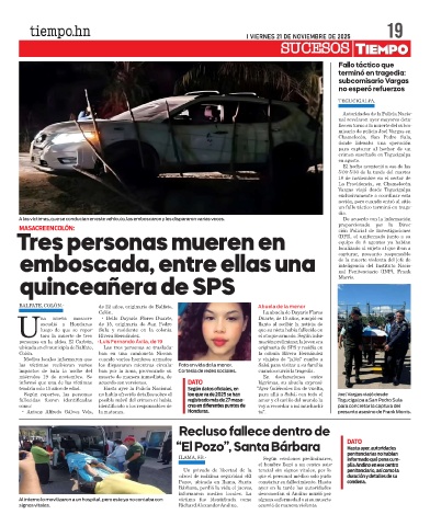 miércoles 19 de noviembre. Se muerte de manera inmediata, de En declaraciones entre