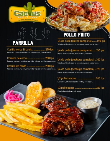 Costilla corte St Louis ....................... 270 lps 1/4 de pollo (pierna completa).........150 lps