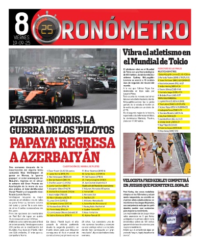 ficado Lando Norris. 9. Isack Hadjar (FRA) 38 3. Mercedes 260 olímpico en los 100 metros y actual-