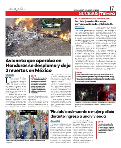 Honduras, sobrevolaba la zona des sanitarias. Tras el impacto, se generó un
