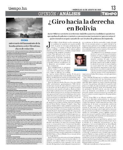 12. Bombardear es ‘lanzar varias bombas’ Jorge (Tuto) Quiroga es de centro en lo formal, de derecha tránsito hacia un nuevo ciclo político en Bolivia, cuando el