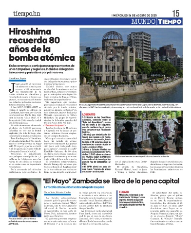 A las 08H15 (23H15 GMT) se afectada por la bomba atómica, vísperas del 80.º aniversario del primer ataque con bomba atómica del mundo, en la ciudad de Hiroshima.