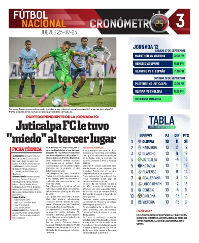 FICHA TÉCNICA oportunidad de terminar tercero Faltó contundencia