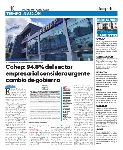 los resultados electorales serán Comunicado oficial del Cohep. participación del sector empre- ma en que se aprobó solo pavimen-