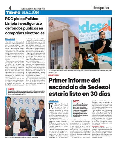 sociales, obras menores, becas telismo político, establecidos en En 30 días se conocerían los resultados de la investigación, que serán presentados en un informe detallado,