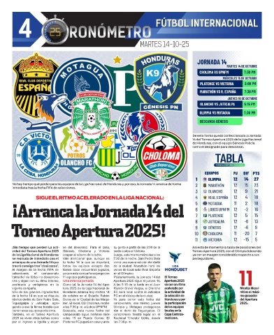 'catracho' de fútbol no desaprove- 11 equipos participantes. Posteriormente, la Jornada 14 del El Torneo 11