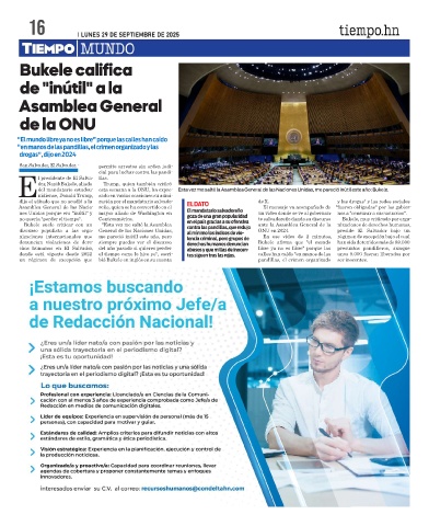discurso populista a las orga- General de las Naciones Unidas, al mínimo los índices de vio- ONU en 2024. preside El Salvador bajo un