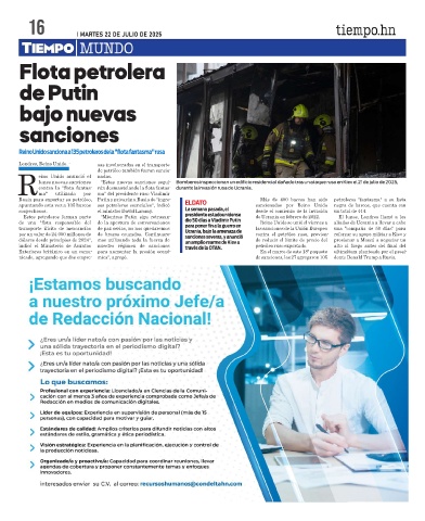 lunes nuevas sanciones "Estas nuevas sanciones segui- Bomberos inspeccionan un edificio residencial dañado tras un ataque ruso en Kiev el 21 de julio de 2025,