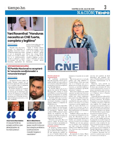 acéfalo el CNE y manejar la trans- política”, afirmó. del Partido Liberal puede haber