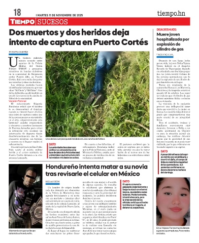 Cortés, dejó como saldo dos perso- dejó la explosión de un cilindro de