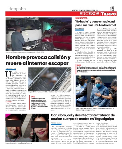 indicaron que el conductor salió de fuga. muerte en el mismo sitio del inci- Juan Orlando Hernández durante su extradición a los Estados