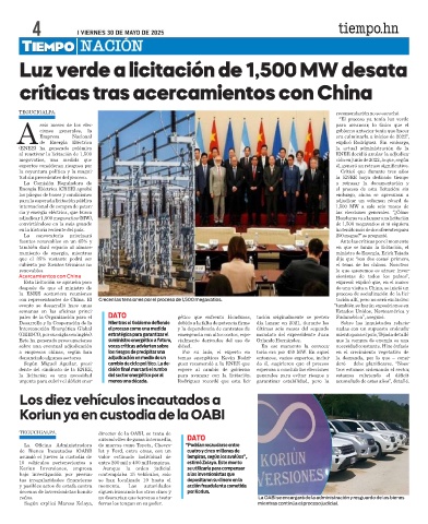 con representantes de China. El Crecen las tensiones por el proceso de 1,500 megavatios. tación allí, pero no será exclusivo;