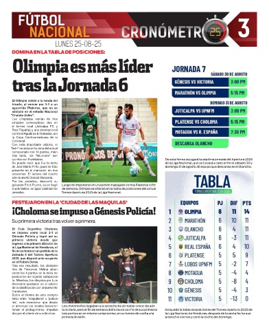 de José Mario Pinto, pues se hizo domingo 31 de agosto. El equipo que descansa es el Olancho.