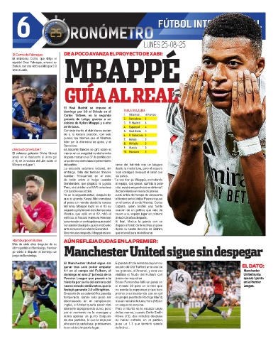 de a la tercera posición, con seis 6. R. Vallecano 3