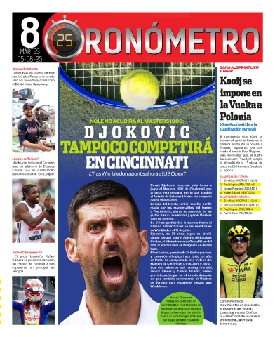 La baja del tenista serbio, que fue confir- 2. Donavan Grondin (FRA/ARK) a 2.