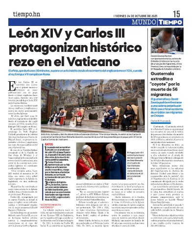 Cottrell presidieron la celebra- Esta foto, tomada y distribuida el 23 de octubre de 2025 por The Vatican Media, muestra al rey Carlos III de personas vinculadas a la muerte