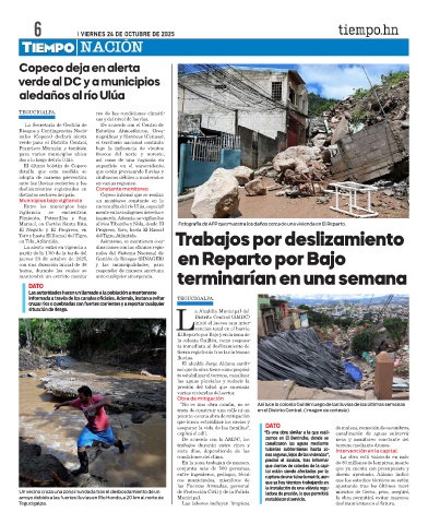 Manuel, en Cortés; Santa Rita, alivios Tibombo y Nola, desde El Fotografía de AFP que muestra los daños cerca de una vivienda en El Reparto.