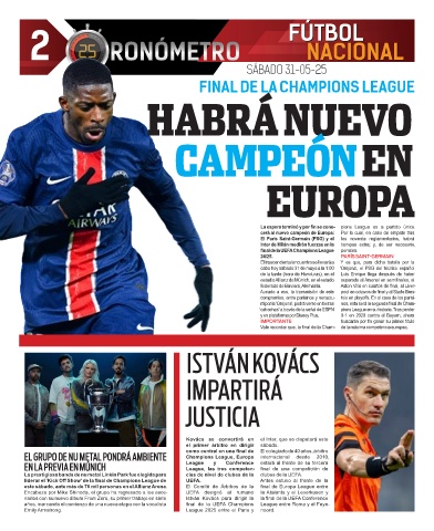 cabo hoy sábado 31 de mayo a la 1:00 'Orejona', el PSG del técnico español