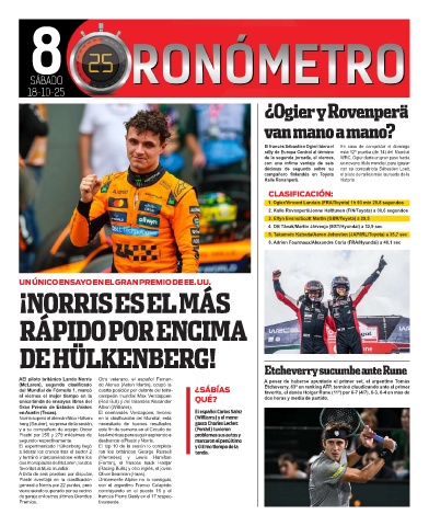 del Mundial de Fórmula 1, marcó cuarta posición por delante del tetra- ¿SÁBÍAS favorito, el danés Holger Rune (11º) por 6-7 (4/7), 6-3, 6-4 en más de