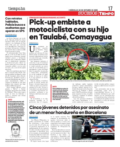 asaltos a personas que retiran ridades. Morazán y Cortés, que con- evidencia y elaborar el informe nuarán con las investigaciones