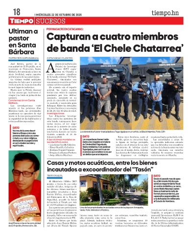 • Rutdian Otoniel Colindes Tegucigalpa, para continuar con licas en el barrio Jesús, bulevar nada, vinculada con muertes
