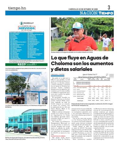 del departamento de Cortés, los servicios básicos que presta la actualmente percibe L57,720 tras