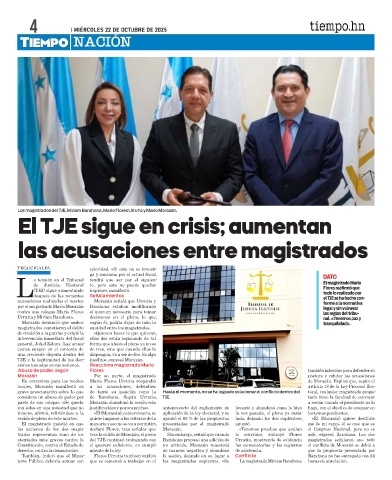 terio Público debería actuar con que se comenzó a trabajar en el los magistrados suplentes. «Se La magistrada Miriam Barahona horas de antelación.