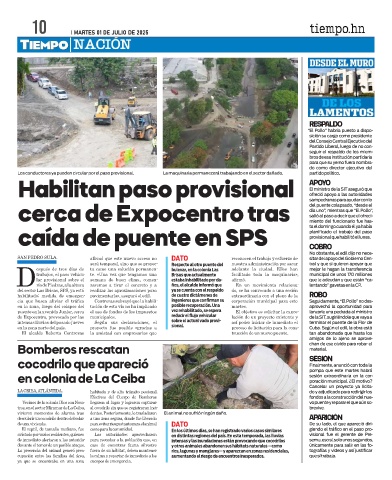 espués de tres días de ta como una solución permanen- bulevar, en la colonia Las adelante la ciudad. Ellos han mejor le hagan la transferencia