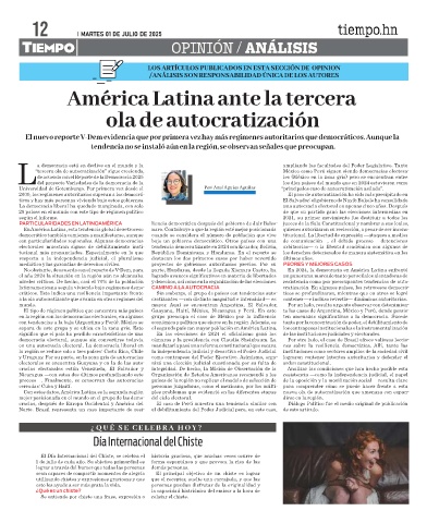 Con estos datos, América Latina es la segunda región ples problemas que evidenció en las diferentes etapas nueva ola de autocratización que amenaza con expan-