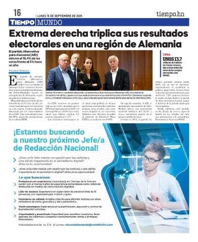 votos frente al 5% hace un año, un La CDU mantuvo su puntua- el estado más poblado de Alema- En aquella votación, el AfD, el el informe de la policía citado por
