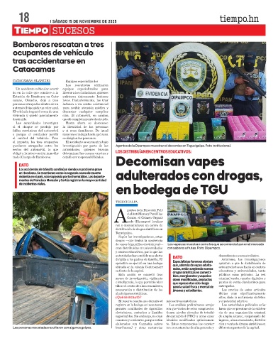ta del Cuerpo de Bomberos. establecer responsabilidades. Decomisan vapes