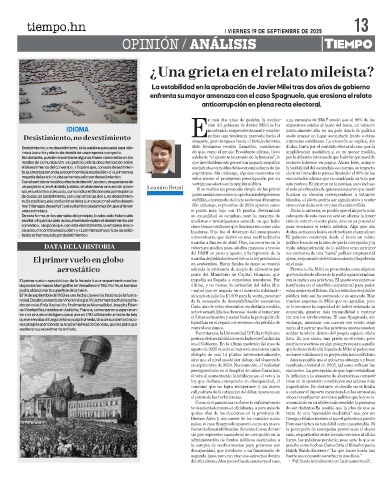 convenio», «Expone que, con este desistimiento, la empresa renun- cinco temas centrales que funcionaron como cata- para erosionar el relato mileísta. Algo que, sin