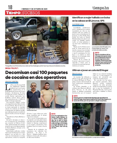 Fotografías de la Policía Nacional sobre ambos hallazgos y la forma en que iba acomodada la cocaína. violentos en la zona.