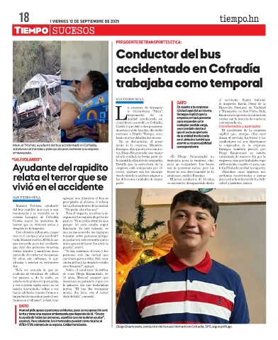 Manuel Tróchez, ayudante del bus accidentado en Cofradía, dente de la empresa, Mauricio correspondiente te empleados de la empresa.