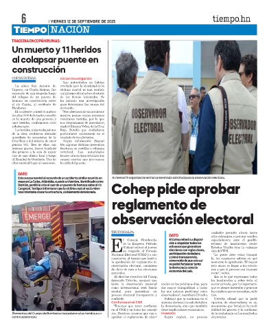 Cangrejal. Testigos informaron que la víctima cayó al vacío mien- Cohep pide aprobar