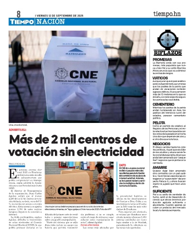 internet. difusión del primer corte de resul- sin problema; si no se cumple, se estima que Honduras nece-