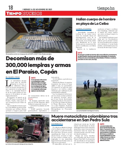 Las autoridades señalaron que • L164,000.00 en billetes de 500 vos y otros Similares. Posterior-
