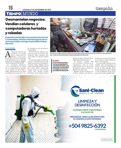 Las autoridades informaron Geovanni Adolfo Saldaña Chicas, nesto Miranda Guiñez, quien computadoras, entre las cuales también hubo intervenciones en