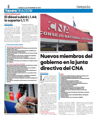 • Diésel: 87 lempiras con 66 centavos, subsidiado por el gobierno, Actualmente, el CNA lo integran las siguientes organizaciones∶