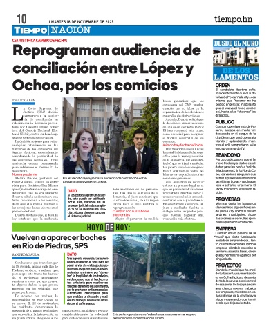 Poder Judicial, explicó en entre- Cossette López y Marlon Ochoa. Una audiencia de concilia- las últimas lluvias y nadie apa-