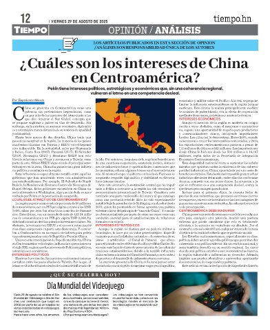 7,600, cifras por lejos tan atractivas como las de Suramé- exterior a favor del principio de “una sola China”. Y conside- CENTROAMÉRICA DEBE MADURAR