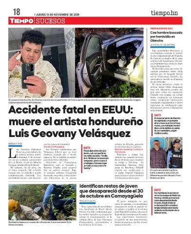 uis Geovany Velásquez Los forenses confirmaron que Pocos días antes del acci- Buscan repatriar cuerpo a