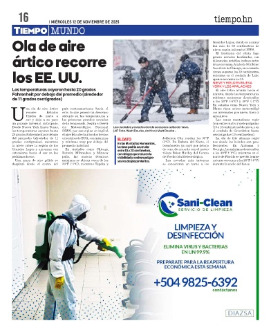 Una masa de aire gélido se máximas se ubican cerca de los sos los desplazamientos. Las nevadas más intensas raturas cercanas a los 20°F (-6°C)