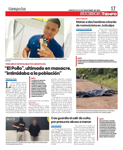 Porvenir, en Morazán, Yoro, estaba hipótesis el ajuste de cuen- reveló Rivera, añadiendo que «El