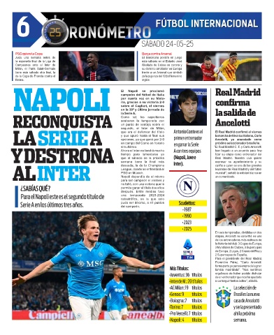 Y DESTRONA Ahora el Inter no tendrá mucho (Napoli, Juve e "El Real Madrid C. F. y Carlo Ancelotti