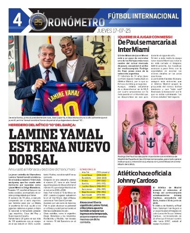 juvenil Lamine Yamal tendrá el honor de portal el ya legendario dorsal '10'.