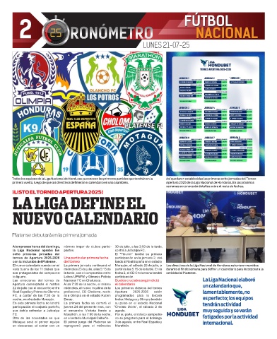 primera vuelta, luego de que los directivos definieran el calendario en una asamblea. Apertura 2025 de la Liga Nacional de Honduras. En las próximas