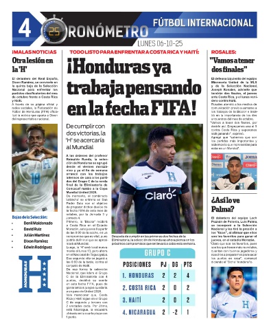 de octubre frente a Costa Rica ante Costa Rica, y el lunes veni-