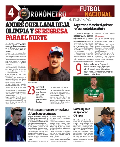 Orellana ya tuvo un paso positivo Se destaca que el sudamerica- Messiniti cuenta con el visto